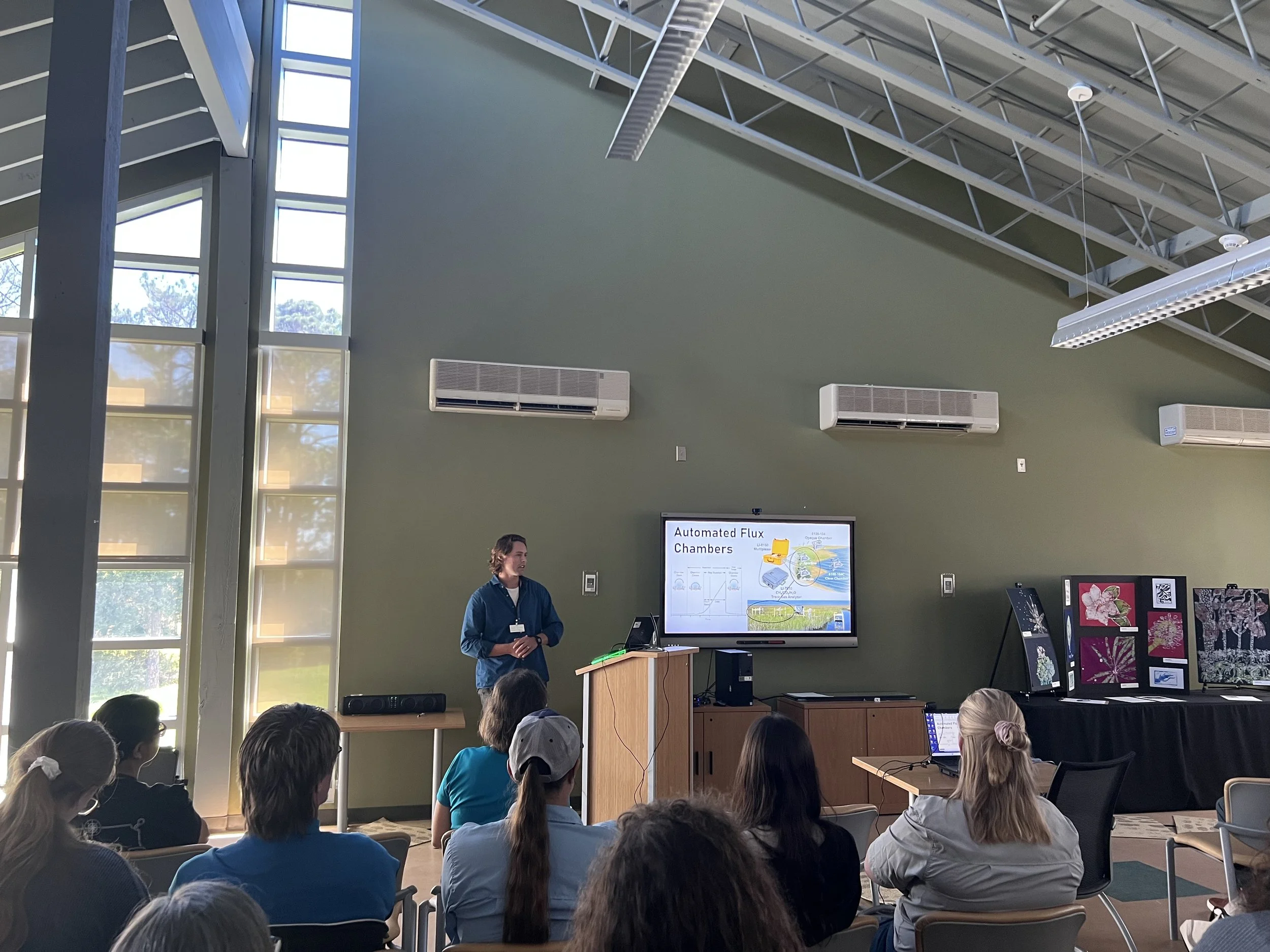 The USM Coastal Ecosystem Biogeochemistry Lab participated in the Grand Bay NERR Research Symposium, where graduate student Frank Driscoll delivered an oral presentation on vertical carbon fluxes in the salt marsh at Grand Bay NERR.