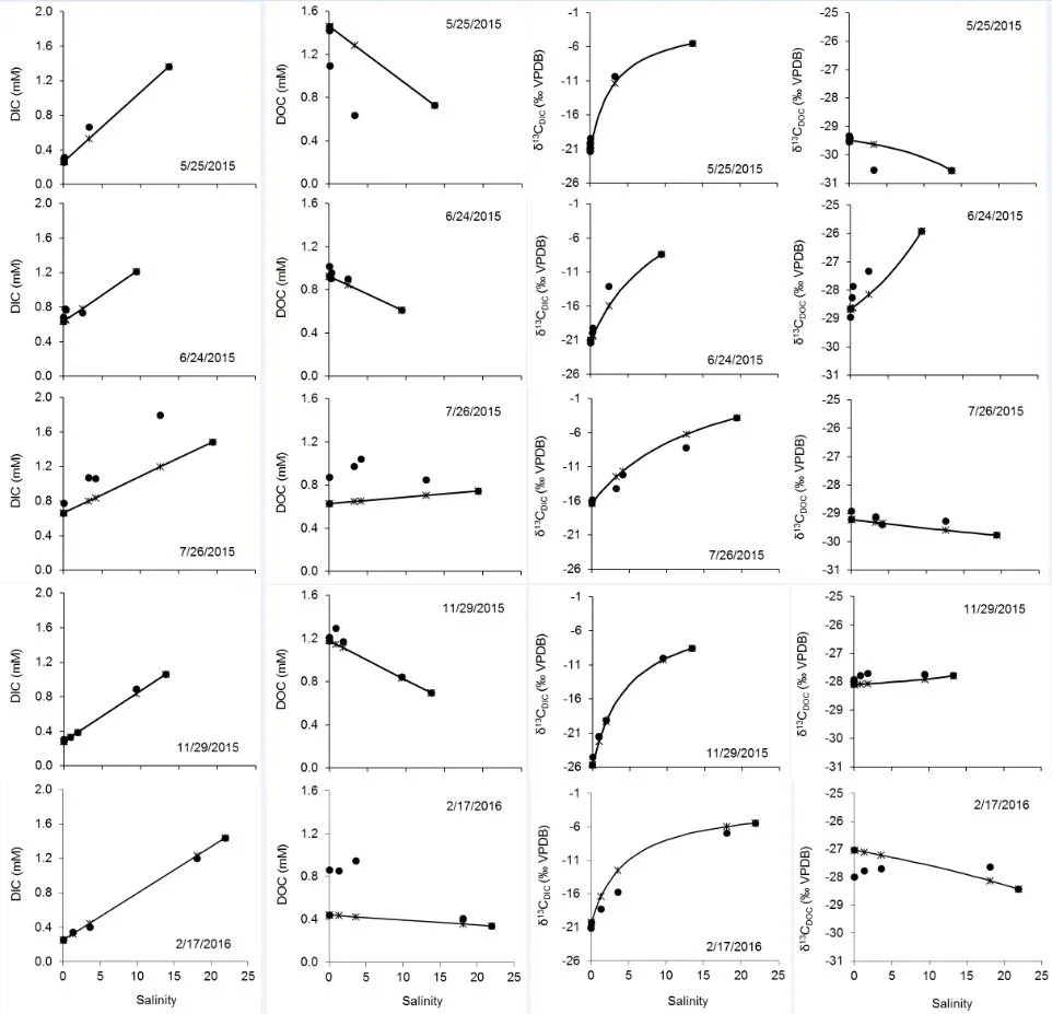 He S., Xu Y.J., 2018. Freshwater-saltwater mixing effects on dissolved carbon and CO2 outgassing of a coastal river entering the northern Gulf of Mexico. Estuaries and Coasts, 41, 734-750. https://doi.org/10.1007/s12237-017-0320-4