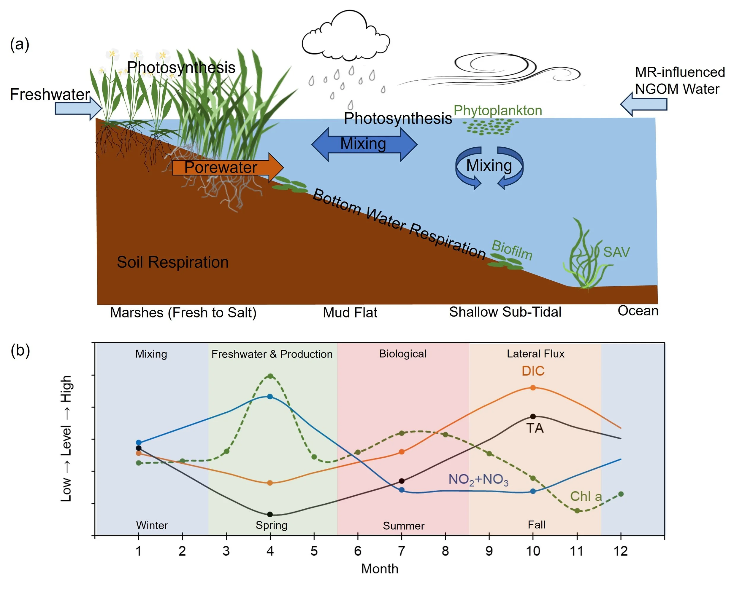 He S., Gordon S., Maiti K., 2025. Carbonate and nutrient dynamics in a Mississippi River influenced eutrophic estuary. Estuaries and Coasts. 48, 63. https://doi.org/10.1007/s12237-025-01494-4